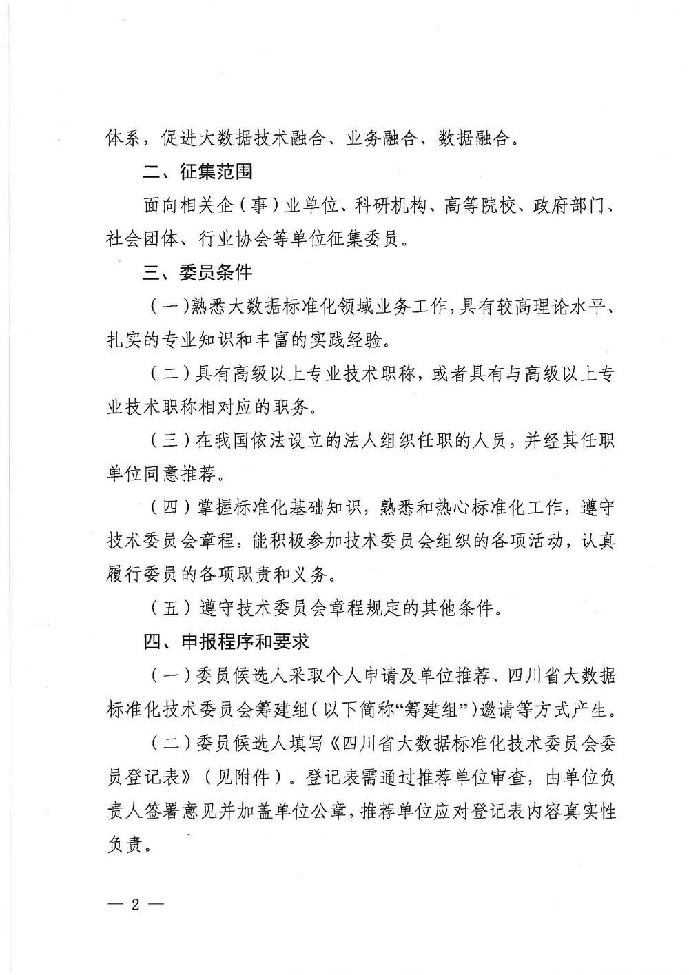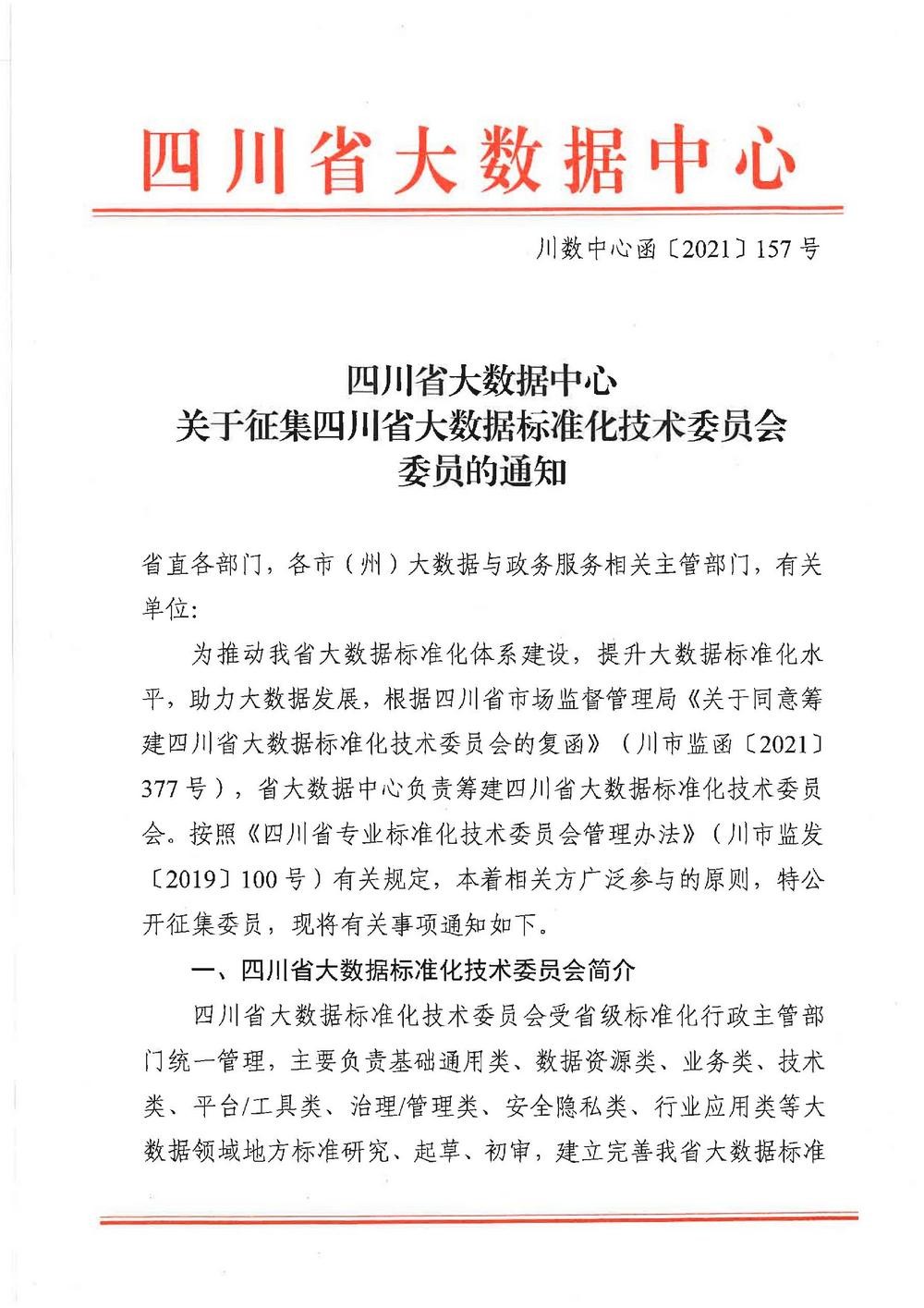 悠米直播体育关于征集四川省大数据标准化技术委员会委员的通知