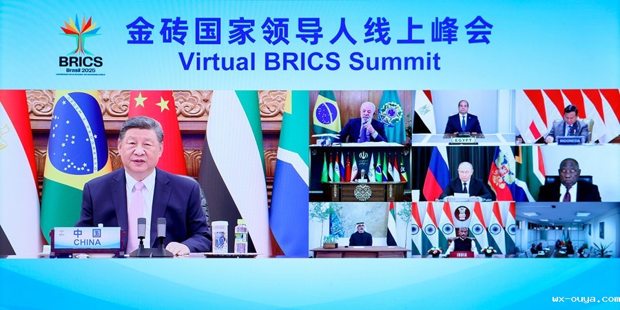 习近平指出,当前,世界百年变局加速演进,霸权主义、单边主义、保护主义甚嚣尘上。金砖国家作为全球南方第一方阵,要坚持弘扬开放包容、合作共赢的金砖精神,共同捍卫多边主义,维护多边贸易体制,推进“大金砖合作”,携手构建人类命运共同体。