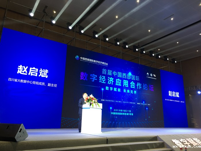 9月21日,赵启斌副主任在西博城参加第三届中国西部国际博览会进出口商品展暨中国西部(四川)国际投资大会的分论坛——中国西部国际数字经济应用合作论坛,并上台致辞。