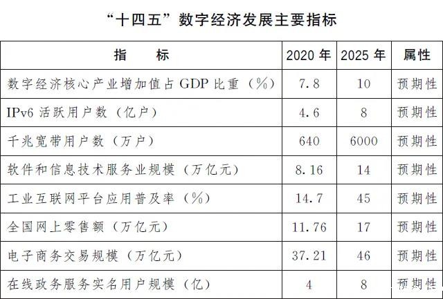 展望2035年,数字经济将迈向繁荣成熟期,力争形成统一公平、竞争有序、成熟完备的数字经济现代市场体系,数字经济发展基础、产业体系发展水平位居世界前列。