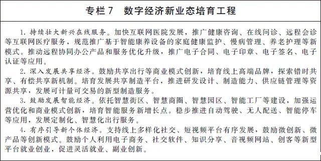(三)加快培育新业态新模式。推动平台经济健康发展,引导支持平台企业加强数据、产品、内容等资源整合共享,扩大协同办公、互联网医疗等在线服务覆盖面。深化共享经济在生活服务领域的应用,拓展创新、生产、供应链等资源共享新空间。发展基于数字技术的智能经济,加快优化智能化产品和服务运营,培育智慧销售、无人配送、智能制造、反向定制等新增长点。完善多元价值传递和贡献分配体系,有序引导多样化社交、短视频、知识分享等新型就业创业平台发展。