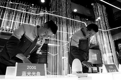 工作人员在中弘紫晶乌兰察布智算中心整理蓝光光盘。郭小燕 摄