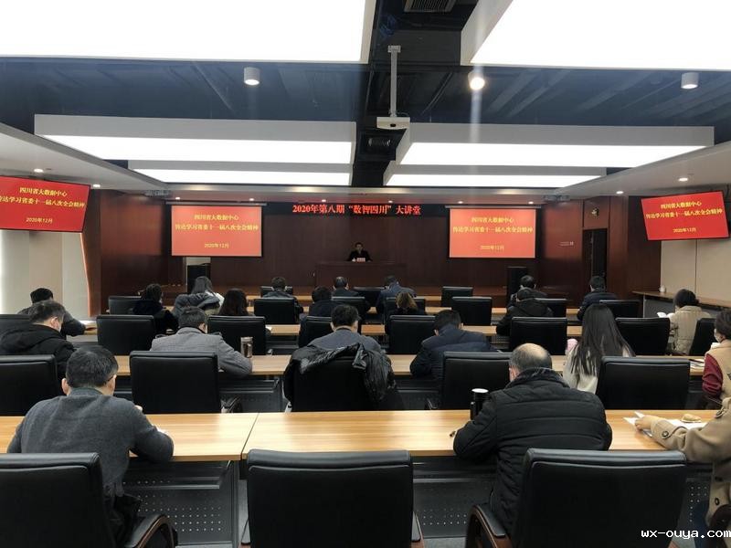12月18日,省大数据中心举办2020年第八期“数智四川”大讲堂。省大数据中心党组成员、副主任钟国强领学省委十一届八次全会精神,深入解读“省委国民经济和社会发展第十四个五年规划和二零三五年远景目标”。