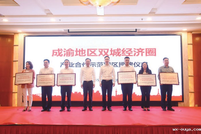 5月8日,成渝地区双城经济圈产业合作示范园区授牌仪式在重庆举行。四川省经济和信息化厅党组书记、厅长朱家德,重庆市经济和信息化委员会党组书记、主任陈金山为示范园区授牌。