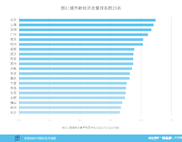 2022年12月至2023年6月,北京、南京、深圳、石家庄、广州在城市NEI平均排名中位列前五名。